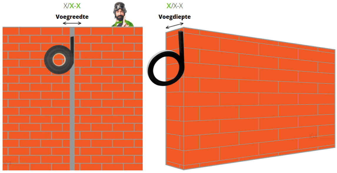 In de afbeelding hieronder wordt de breedte en de diepte van de voeg uitgelegd. Hier ontstaat namelijk wel eens wat onduidelijkheid over.