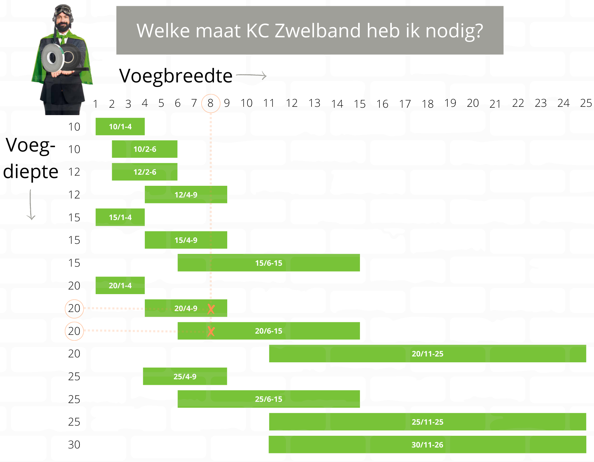 De ideale voeg voor deze zwelband is tussen de 6 en 15 mm breed.