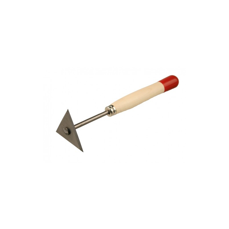 Waarom eigenlijk een driehoek? Met een ronde vorm kom je natuurlijk niet ver op een vlakke muur! De driehoekvorm zorgt ervoor dat je een groot mes oppervlak hebt om zo de verf goed weg te schrapen. Door de kleine punten die vormen door de driehoekvorm kan je makkelijk bij kleine en smalle plekken of hoeken. Zo blijft er geen enkel likje verf hangen. Ook niet in de kleine hoekjes.