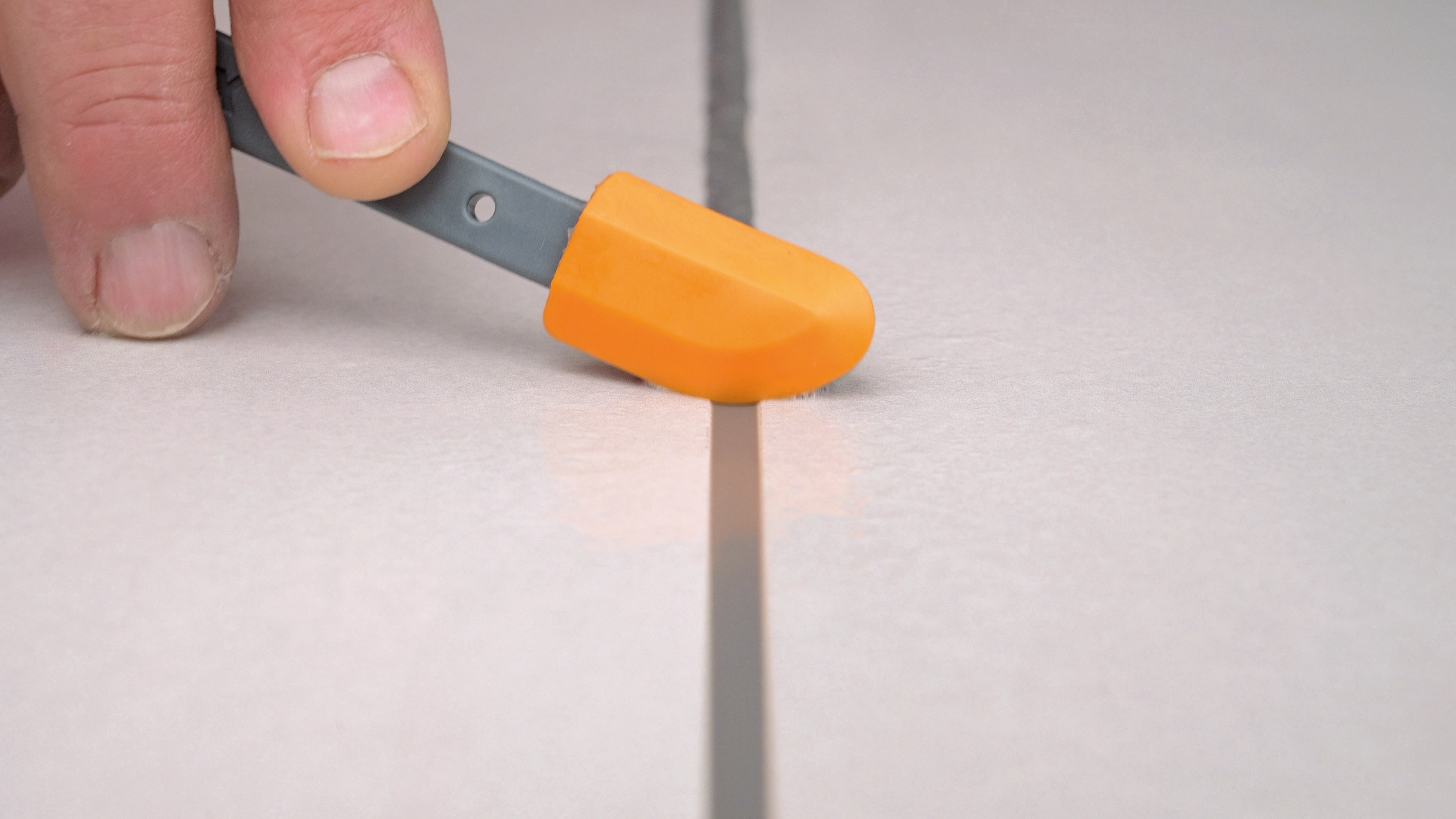 Van tevoren is het van belang om de  Fugenfux Multitool te bevochtigen in een schone bak met de afwerkzeep. Hierna is het mogelijk om de Fugenfux Multitool met gelijkmatige druk over de gevulde voeg te trekken. De overtollige afdichtkit kan in de afvalbak verwijdert worden.