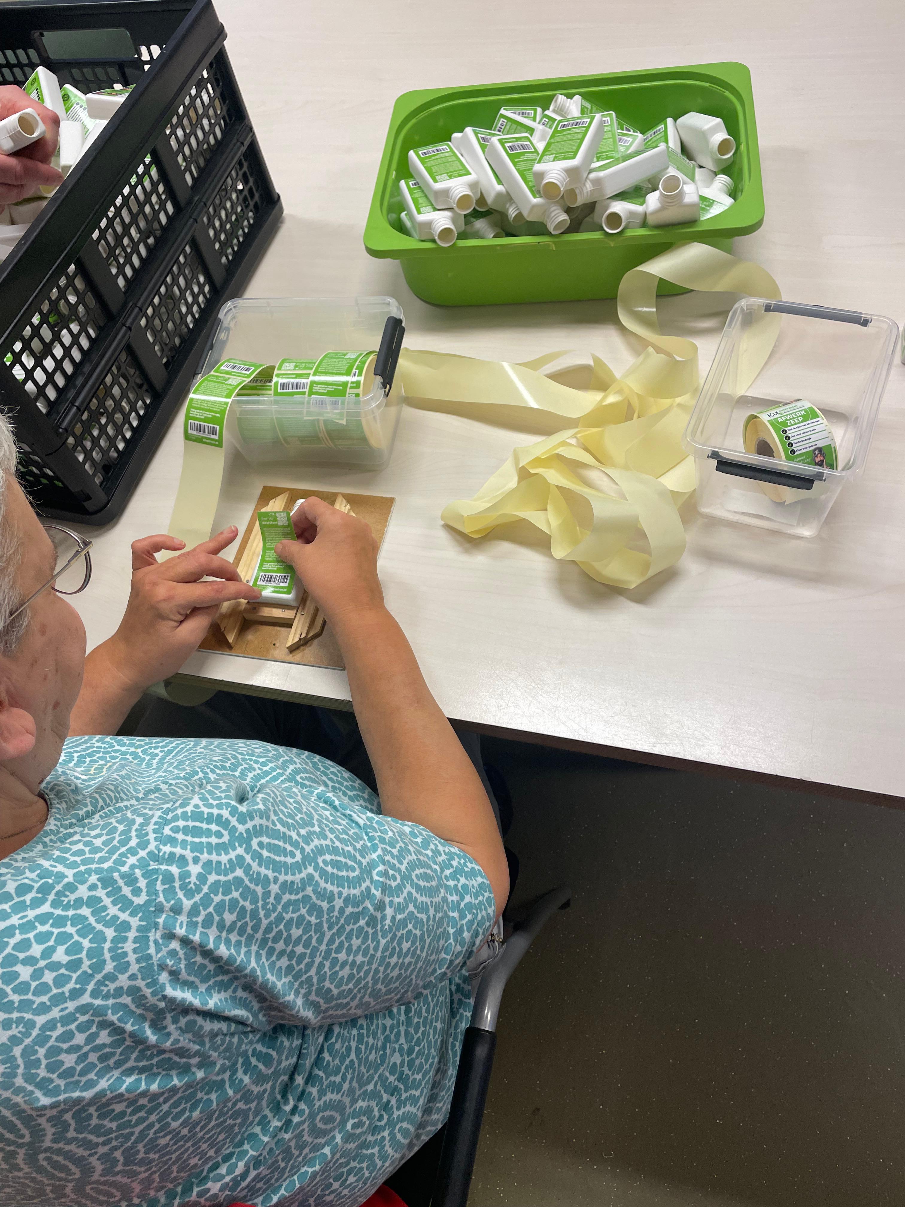 🏷️ Met liefde geplakt! De toppers van Dagcentrum De Golfslag hebben met veel zorg alle flesjes van etiketten voorzien.