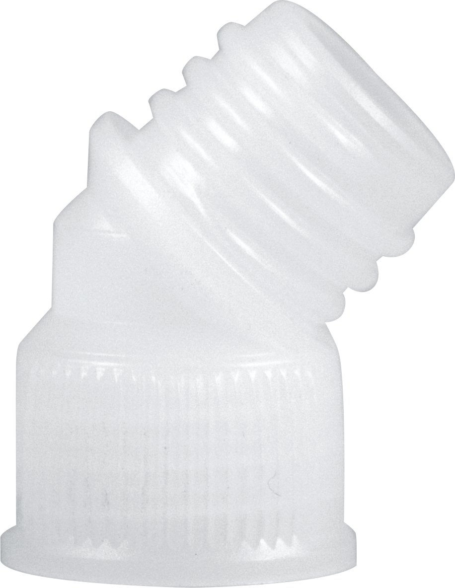 Zijn er moeilijk bereikbare plekken, of moet je onder een hoek kitten?! 'De Nozzle 45 graden' die ook wel 'knietje' genoemd wordt is dan wat jij zoekt! Draai hem gemakkelijk op een koker en plaats vervolgens een kit tuit!