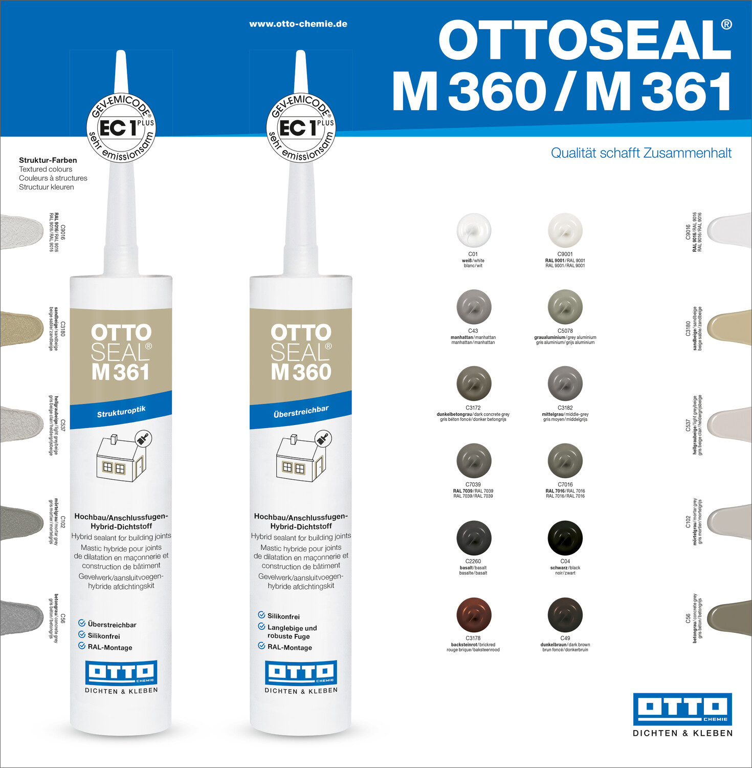 Deze fijn verwerkbare dilatatiekit is een afdichtingskit op basis van polymeren (en noemen we een: hybride) speciaal voor dilataties en aansluitingen in de bouw. Deze gevelkit wordt meestal gebruikt bij aansluitvoegen bij balkons, gevels, kozijnen, metaalconstructies en meer. Een enorm voordeel ten opzichte van alle andere gevelkitten is de diversiteit aan kleuren en het feit dat de M360 erg snel kleefvrij is. Otto-Chemie maakt niet alleen enorm veel kleuren in siliconenkit, maar ook in hybride gevelkitten maken ze het verschil.