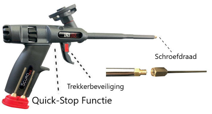 Nieuwe generatie purpistool met Quick-stop functie en messing punten in handvat