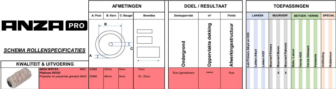 verfroller_specificatiesANZA Roller Wistex | Verfrollers | Kitcentrum - Kitcentrum.nl
